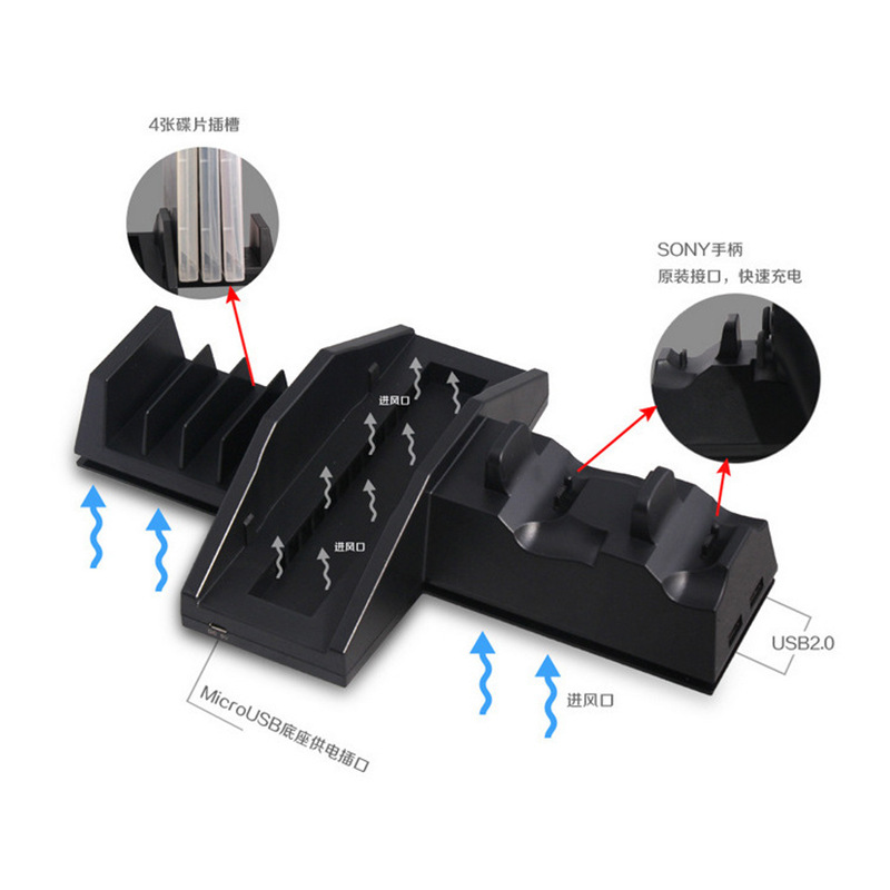 With Cooling Fan for PS4 /Pro Controller Charger Station for PS4 Controller Holder.