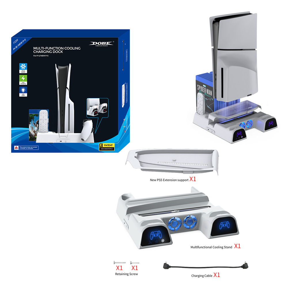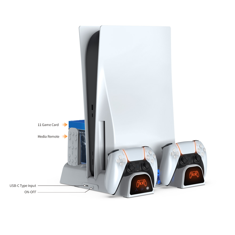 For PS5 Slim Cooling Base Charging Dock with Light New Vertical Stand Charger Station Disc Storage Rack TP5-3532B