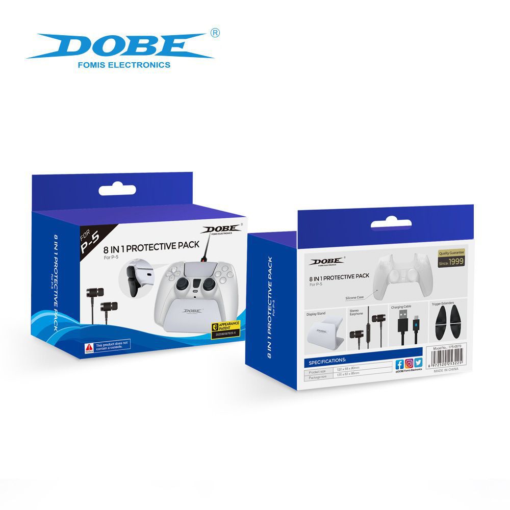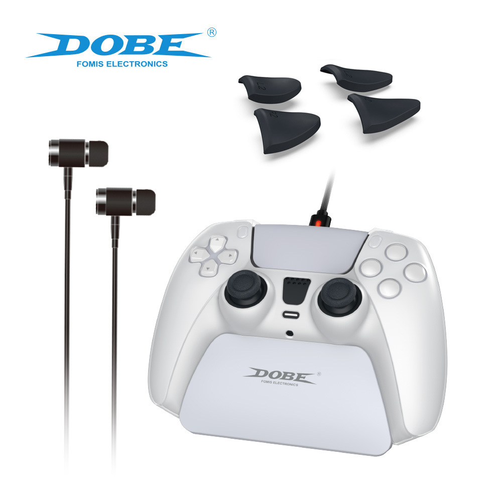 For PS5 TP5-0579 8 in 1 Gaming Set Silicone Case Charging Cable Stereo Earphone Trigger Extenders Display Stand
