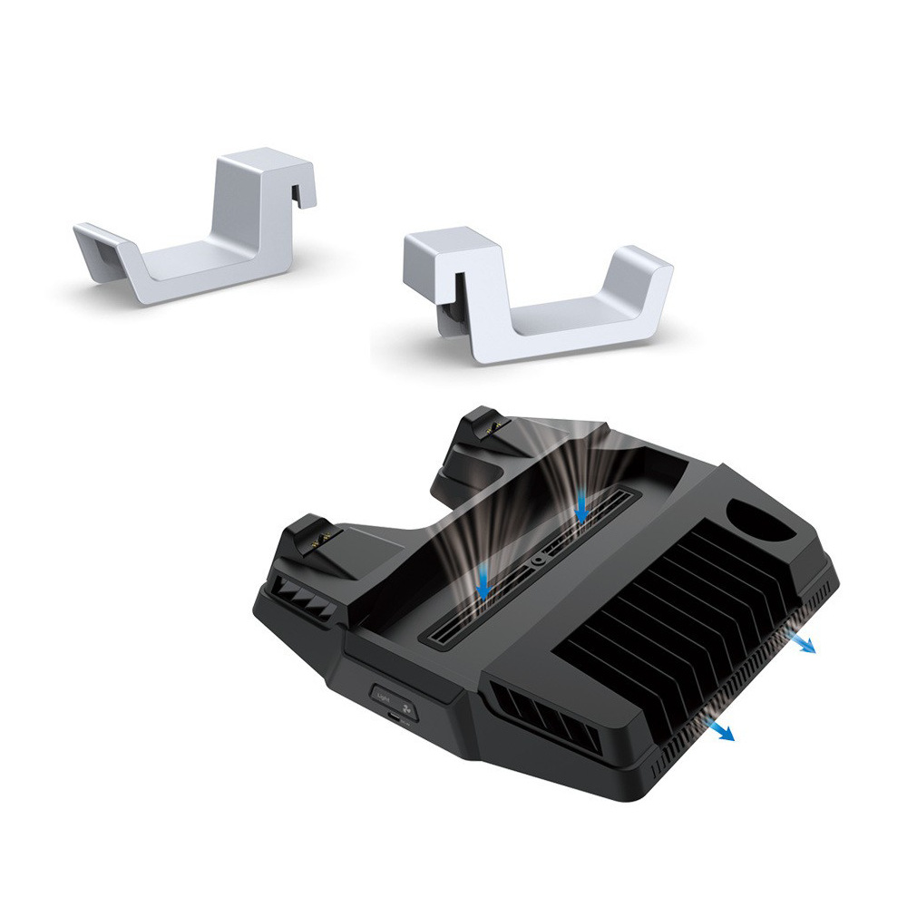 For PS5 TP5-1525B Multifunctional Vertical Cooler Fan Stand Console Dual Charger & Headphone Holder
